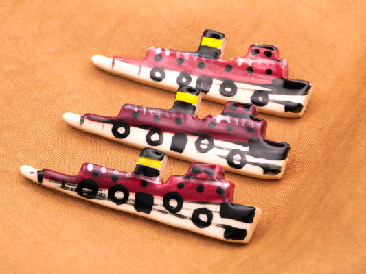 Ceramic Boat Burgundy Ship Large Button 14x48mm