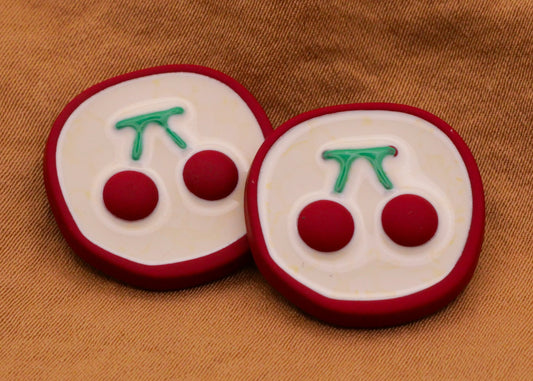 Cherry Cherries Fruit Hand-Painted Porcelain Ceramic Button 14mm