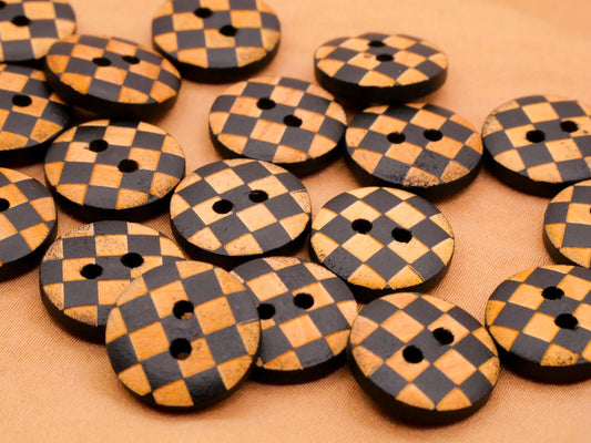 Check Checkerboard Wood Set of Twenty Buttons 15mm