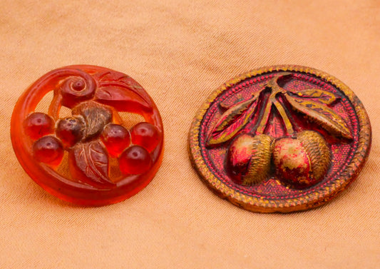 Cherry Cherries Early Plastic Stamped Brass Red Tint Vintage Button Various 22-26mm