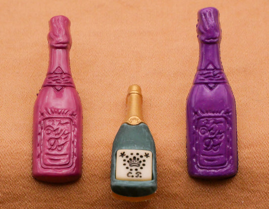 Champagne Bottle Realistic Plastic Set of Three Buttons 13x38mm