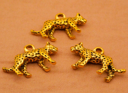 Cheetah Leopard Big Cat Gold Metal Set of Three Charms Embellishments 15x23mm