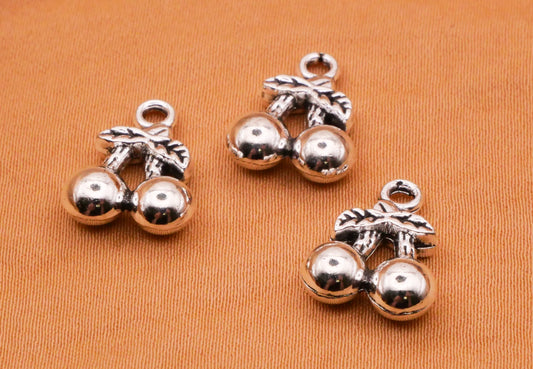 Cherry Three-Dimensional Silver Metal Set of Three Charms Embellishments 11x14mm