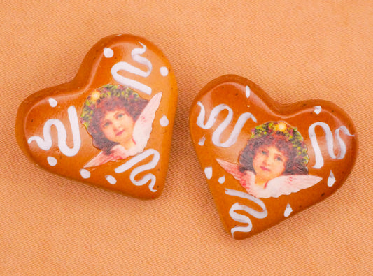 Cherub Angel Decal Heart Hand-Painted Wood Button 23x26mm