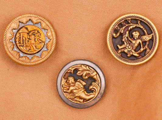 Cherub Cupid Putti Lion Victorian Large Tinted Metal Button Various 36-38mm