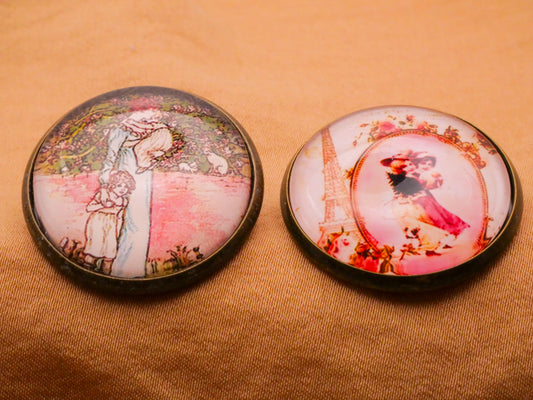 Children Scene Glass Dome Bronze Metal Button Various 28mm