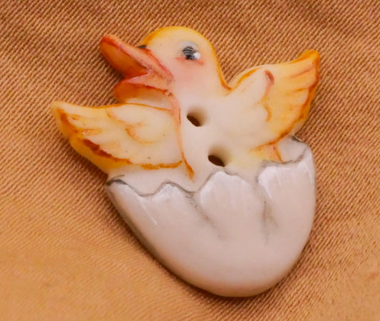Chick or Baby Duck Hatching Egg Hand-Painted Porcelain Ceramic Button 19x20mm