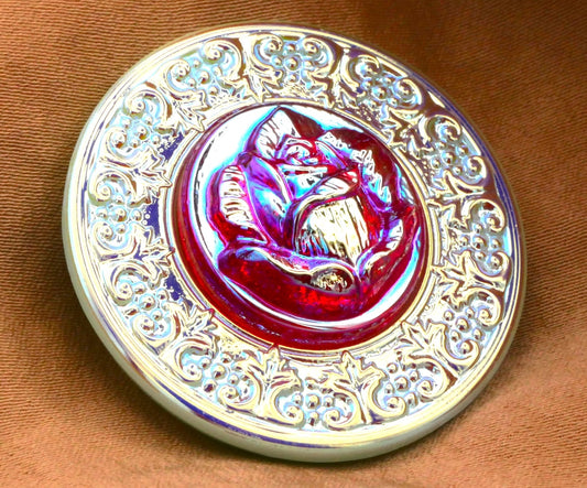Czech Glass Rose Pink Jade Green Iridescent Large Button 34mm