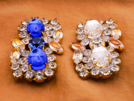 Czech Rhinestone Cobalt Blue Clear Glass Metal Large Button Various 28x45mm