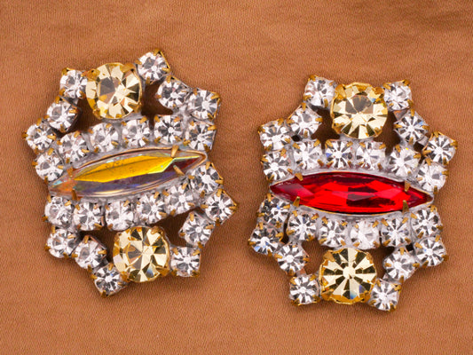 Czech Glass Rhinestone Marquise Center Iridescent Red Large Metal Button Various 30x38mm