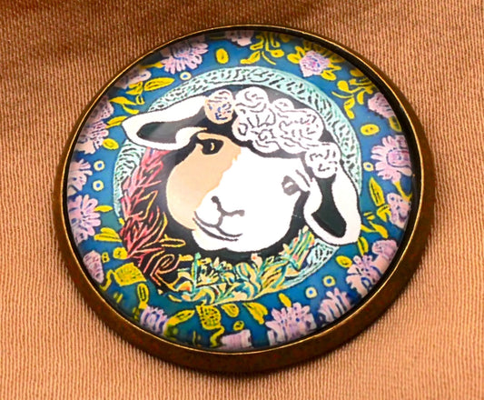 Curly Sheep Lamb Flower Garden Glass Dome Button 27mm