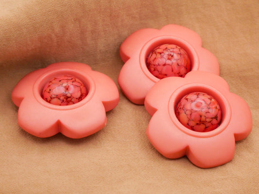 Daisy Peachy Pink Coral Glass Center Plastic Button 30mm