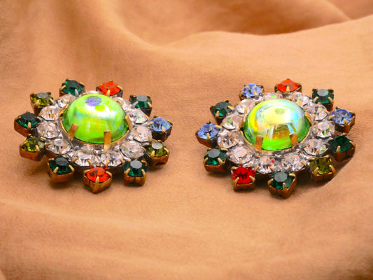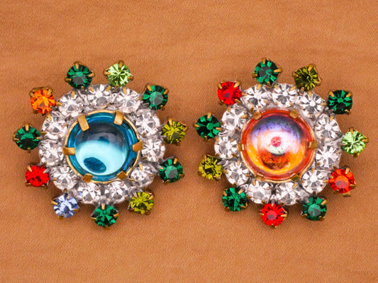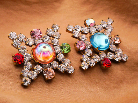 Czech Rhinestone Glass Dome Flower Snowflake Sunburst Multi-Color Vintage Button 32mm