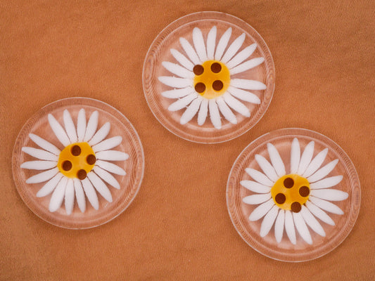 Daisy He Loves Me White Translucent Plastic Sew-Thru Set of Three Buttons 30mm