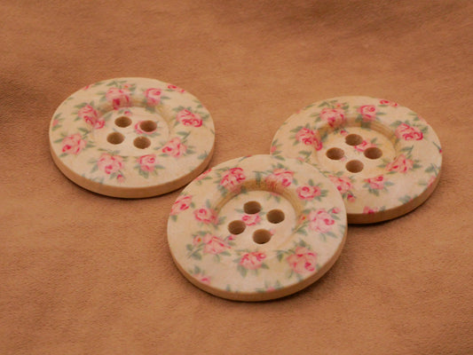 Dainty Pink Rose Wallpaper Pattern Wood Set of Two Buttons 25mm