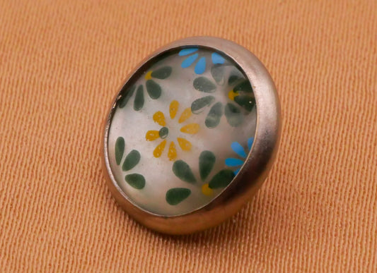 Daisy Green Blue Yellow Vintage Plastic Metal Pair of Buttons 12mm