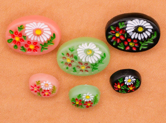 Daisy Flower Painted Vintage Pink Green Black Plastic Button Various 8-18mm
