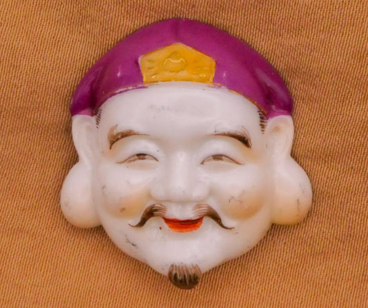 Daikoku God Face Hand-Painted Porcelain Ceramic Vintage Button 24x26mm