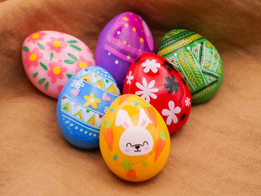 Easter Egg Decorated Colorful Set of Six Plastic Buttons 19x24mm