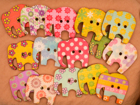 Elephant Animals Wood Set of Twenty Buttons 15mm