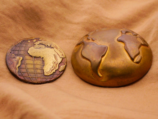 Earth Globe Vintage Brass Look Metal Button Various 29-38mm
