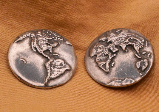 Earth Globe Double-Sided Danforth Pewter Metal Button Various 23mm