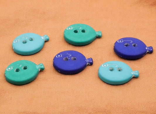 Fish Blue Aquamarine Turquoise Plastic Set of Six Buttons 11x15mm