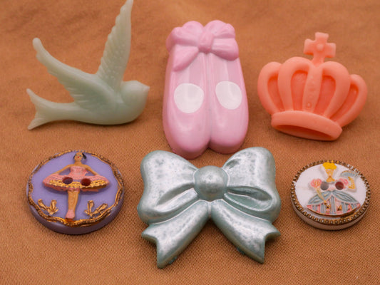 Feminine Pink Aqua Ballet Crown Bird Bow Plastic Button Various 15-29mm