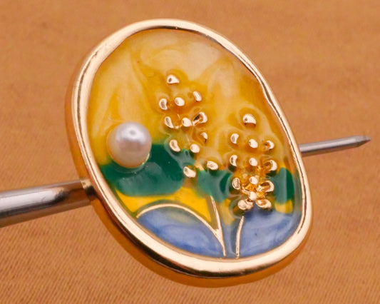 Field Scene Landscape Enamel Faux Pearl Metal Button 16x21mm
