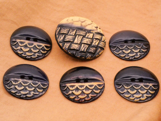 Feather or Basketweave Celluloid Early Plastic Button Various 27-33mm
