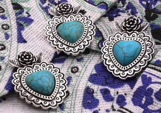 Faux Turquoise Heart and Rose Metal Button 26x34mm