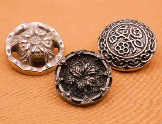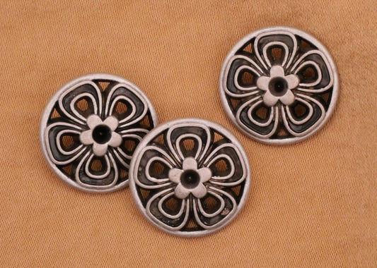 Flower Groovy Pattern Silver Metal Set of Three Buttons 20mm