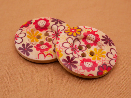 Flower Groovy Colorful Wood Pair of Buttons Various 30mm