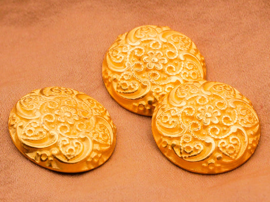 Flower Floral Vines Swirl Gold Metal Vintage Button 30mm