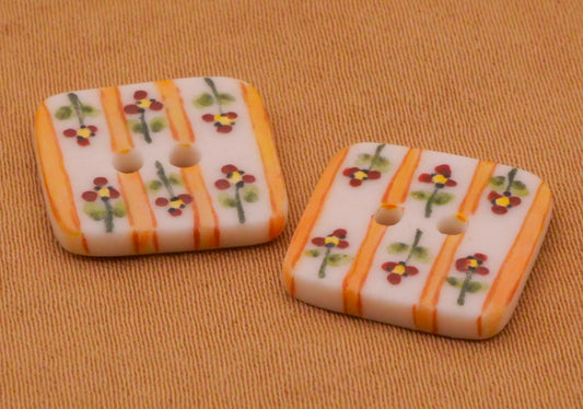 Flower Floral Wallpaper Design Hand-Painted Square Porcelain Ceramic Button 14mm