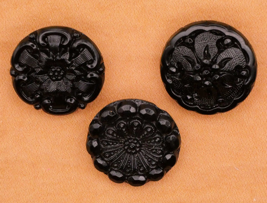 Flower Intricate Black Glass Vintage Button Various 18mm