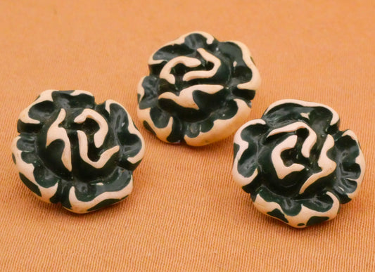 Flower Forest Green Buffed Look Vintage Plastic Button 15mm