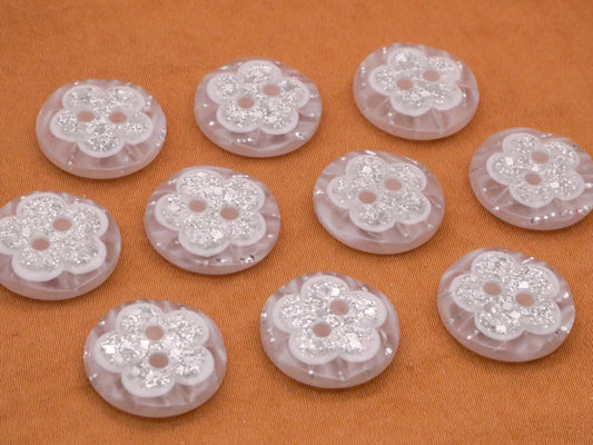 Flower Glitter Design in Plastic Set of Ten Buttons 15mm
