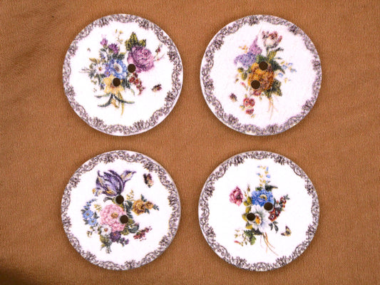 Flower Floral Spring Bouquet Set of Four White Wood Sew-Thru Buttons 25mm