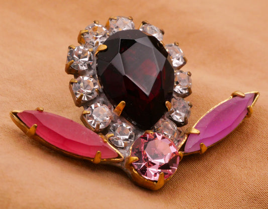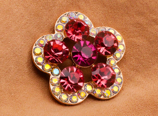 Flower Red Pink Czech Glass Rhinestone Large Metal Button 32x44mm