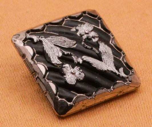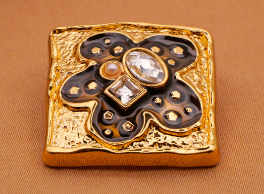 Flower Rhinestone Enamel Square Gold Metal Button 23mm