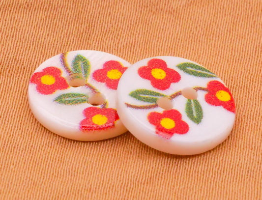 Flower Red Vining Mother of Pearl Pair of Buttons 12mm