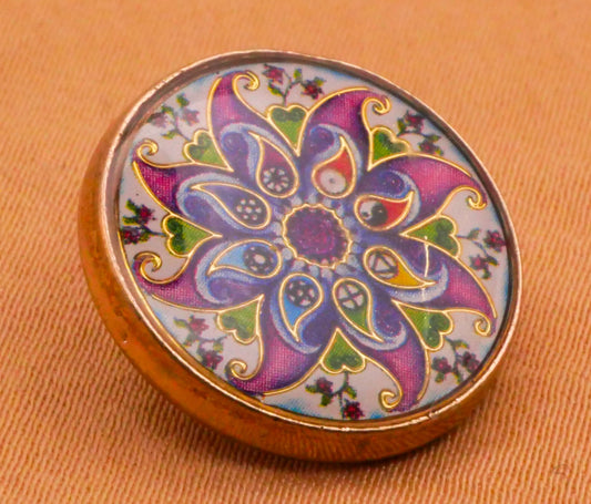 Flower Spiral Paisley Heart Yin Yang Resin Gold Metal Button 18mm