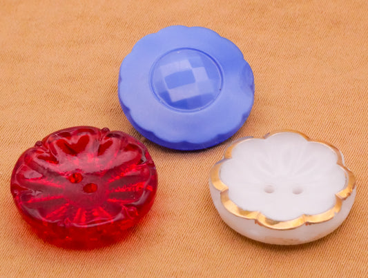 Flower Scallop Edge Vintage Glass Button Various 18mm
