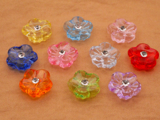 Flower Rhinestone Transparent Plastic Assorted Set of Ten Buttons 15mm