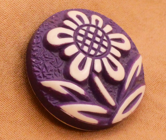 Flower Retro Purple Buffed Celluloid Early Plastic Button 22mm