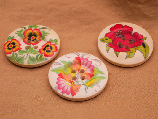 Flowers Red Green Wood Sew-Thru Button Various 30mm