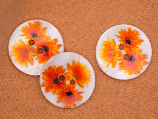 Flower Trio Sunflower Gerber Daisy Mother of Pearl Button 25mm