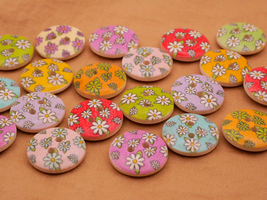 Flowers Daisies Colorful Wood Set of Twenty Buttons 15mm