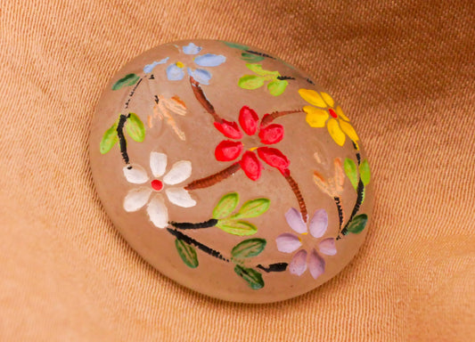 Flower Wreath Leaves Colorful Hand-Painted Frosted Glass Vintage Button 23mm